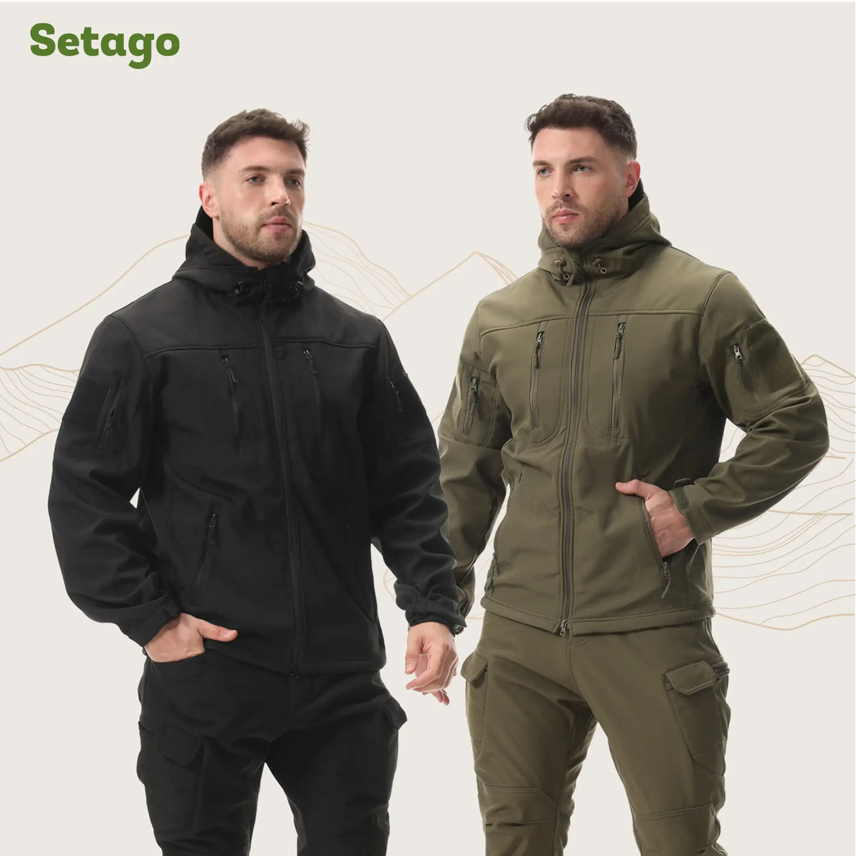 Đi trekking/camping lạnh, bạn mặc Tactical V2 như lớp áo ngoài: bên trong phối áo base-layer/áo giữ nhiệt, kéo khóa cao và trùm mũ khi gặp gió; khi vận động nhiều có thể mở khóa để thoáng hơn. Nếu gặp mưa bụi, nên phủi sạch bùn đất trước rồi treo áo nơi thoáng để khô tự nhiên.