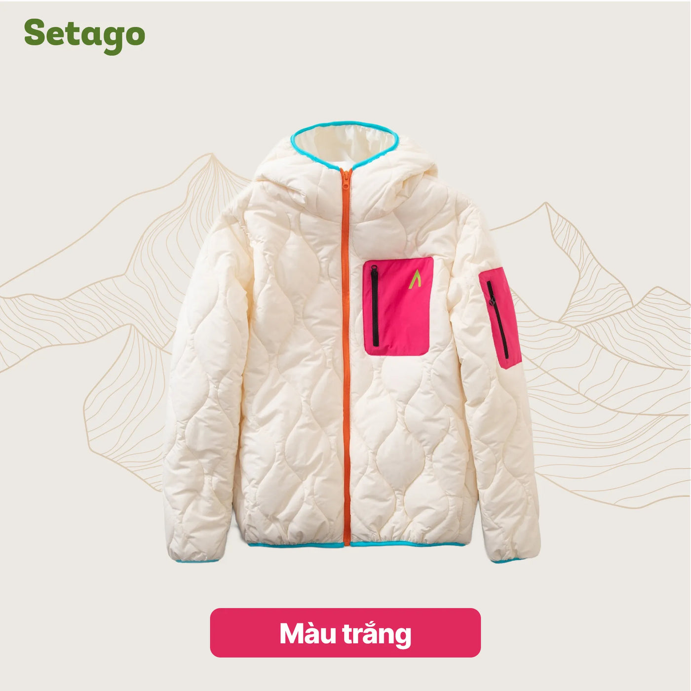 Thiết kế: Dáng ôm gọn, có mũ liền và túi ngực khóa kéo.
